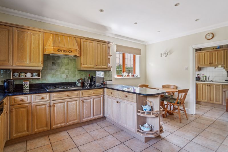 Kitchen / Breakfast Room fitted with a comprehensive range of wall and base units with granite worktop surfaces, integrated five ring hob and overhead extractor, integrated oven, grill and dishwasher. Tiled flooring and splashbacks, aspect over Rear Garden. Door to Utility Room with wall and base units, space and plumbing for washing machine and door to side return.