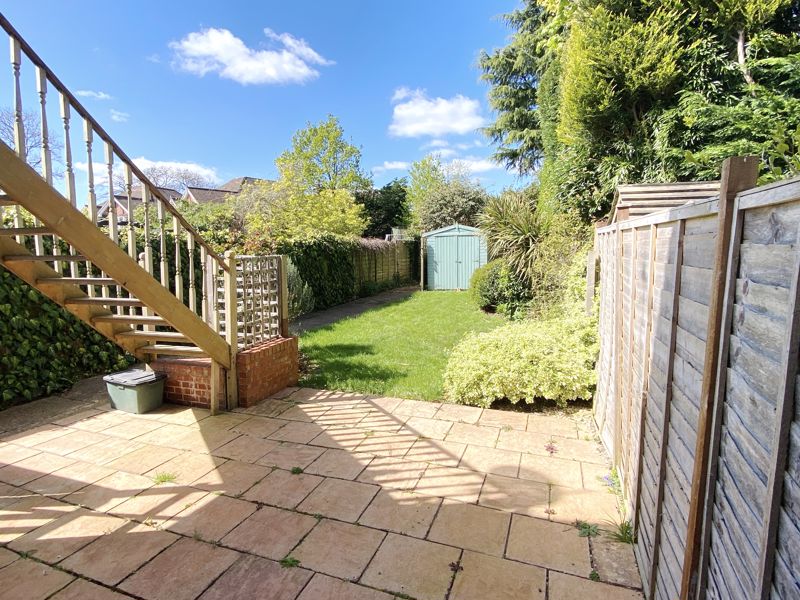 The Garden is westerly facing and mainly laid to lawn with patio are and timber shed. Side access shared with apartment above.