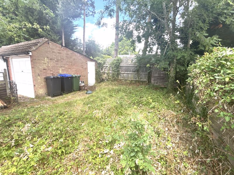 Garage (not direct access) with up and over door and rear pedestrian door. Garden laid to lawn with mature trees and shrubs.
