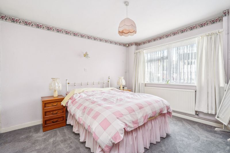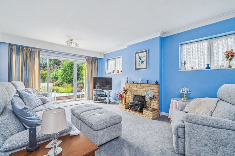 Front Garden laid to lawn with pathway. Entrance Porch and front door leading to a spacious Entrance Hall with hatch to loftspace. Large double aspect Sitting Room with glazed patio doors giving access to and an aspect over the Rear Garden. Brick built fireplace and mantle.