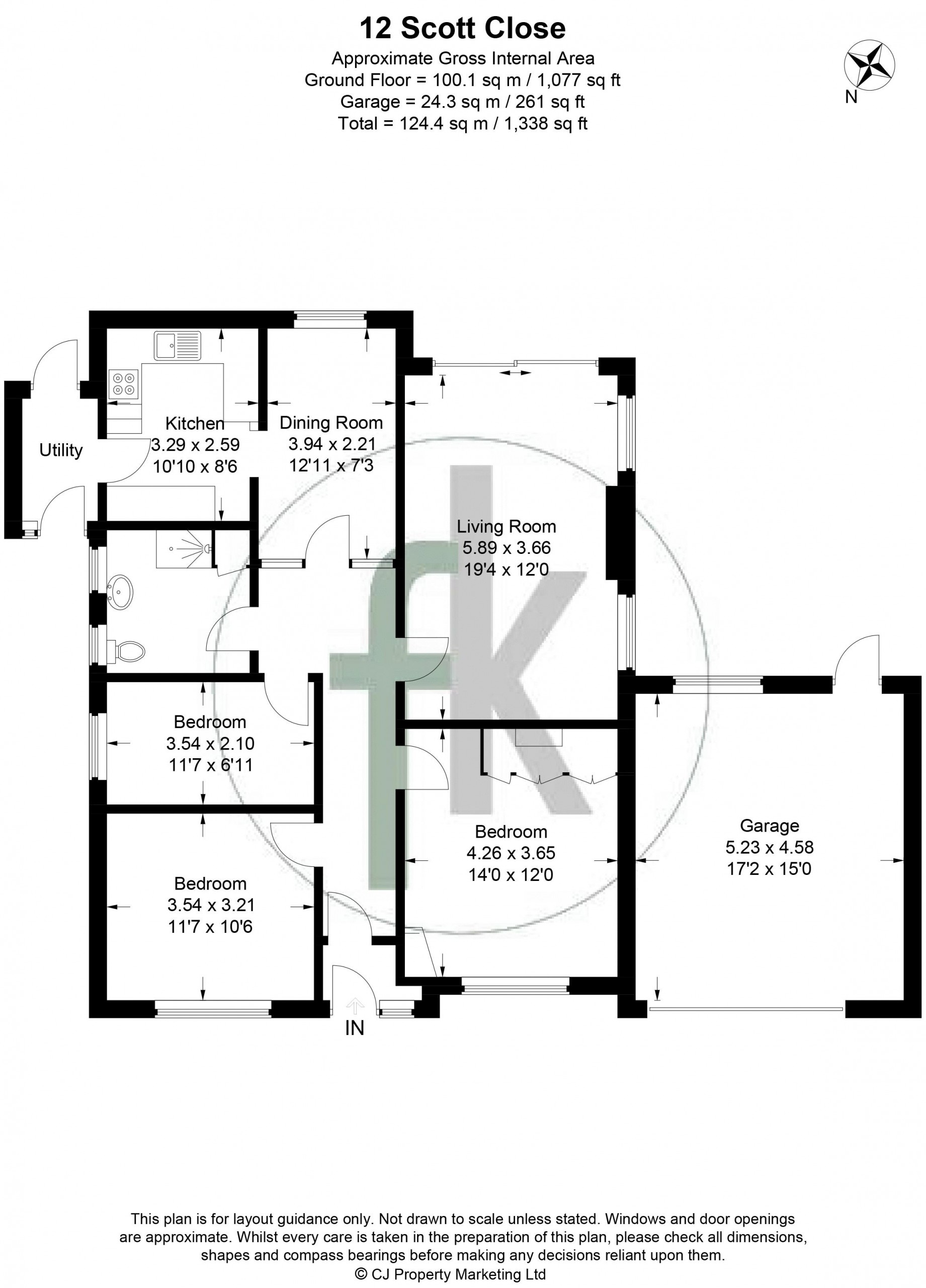 Dining Room with a Garden aspect and doorway to the Kitchen, which is fitted with a range of wall and base units, integrated oven, four ring hob and overhead extractor, space and plumbing for a washing machine and space for fridge freezer. Wall mounted central heating boiler, sink with drainer and aspect over the Garden. Door to Utility Room and access to the front and rear of the house.