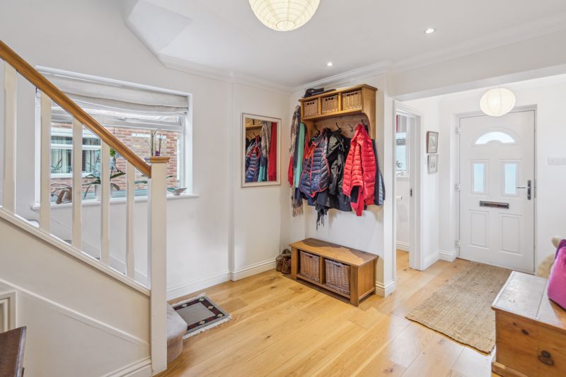 Front Door leading to Entrance Hall with wooden flooring and side window, staircase to First Floor. Downstairs Cloakroom with WC, wash hand basin and window.